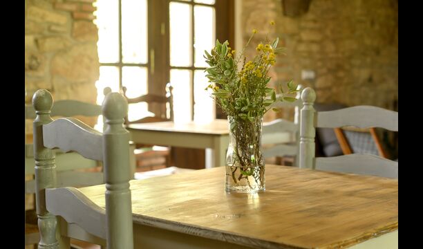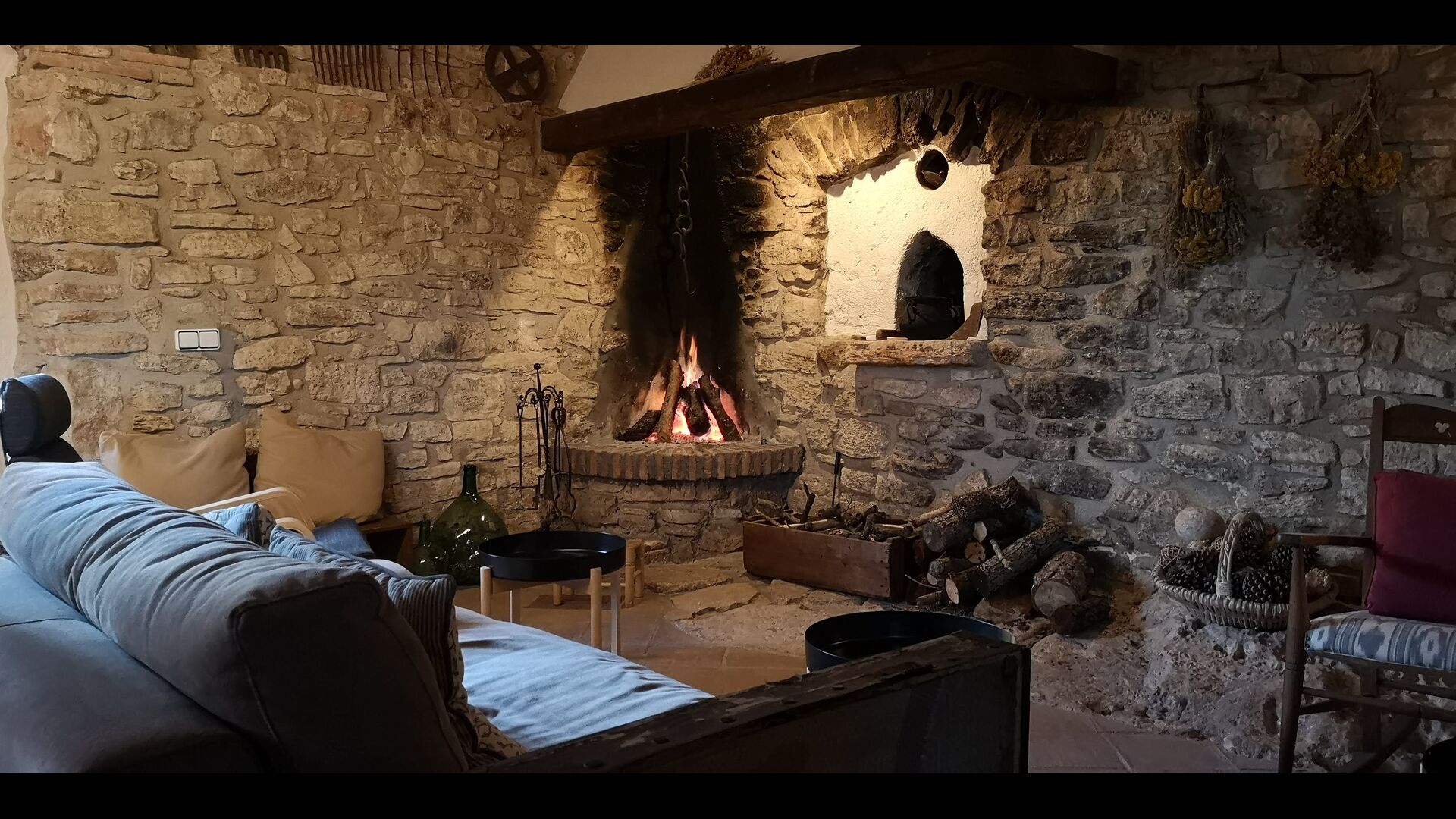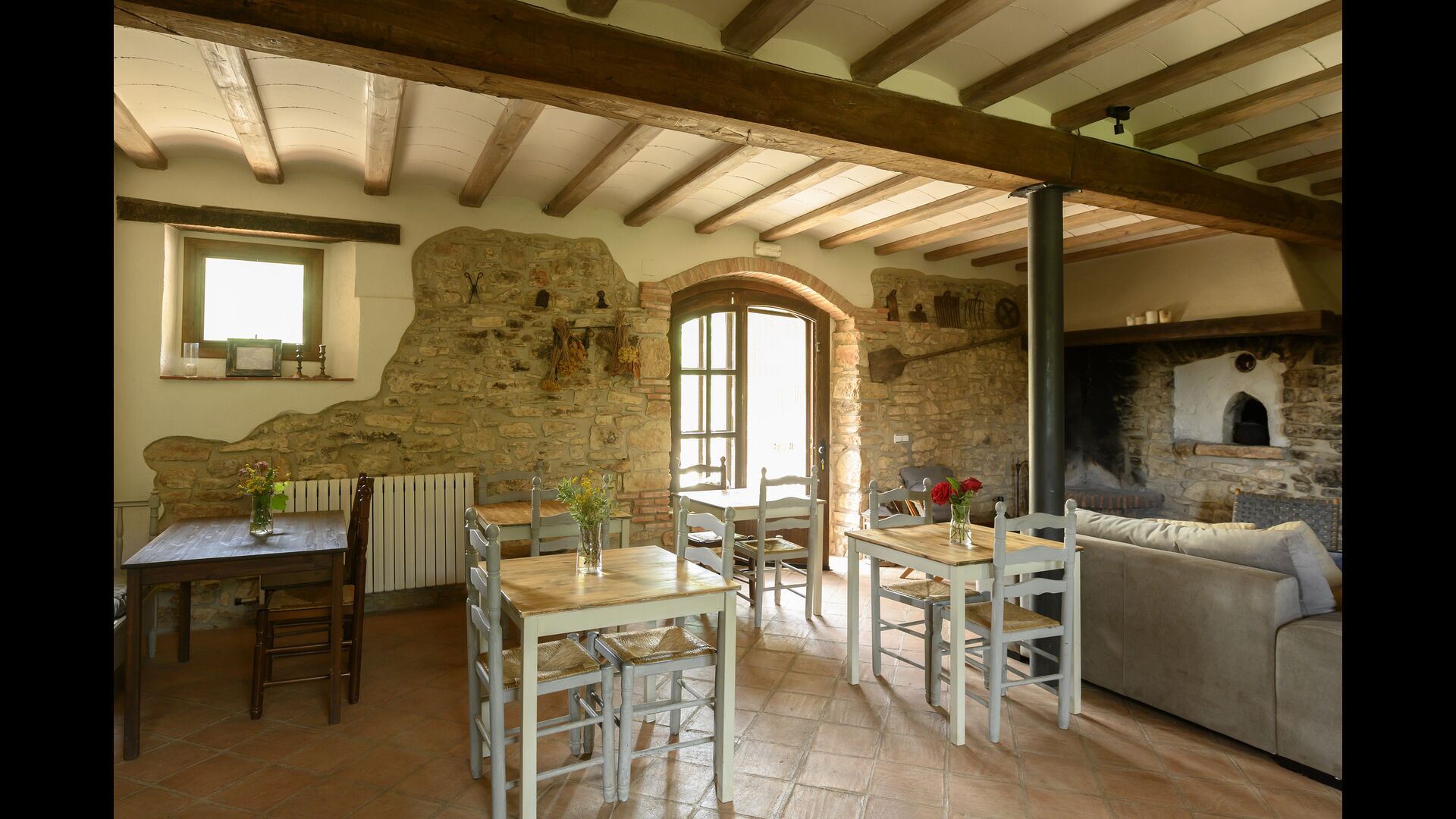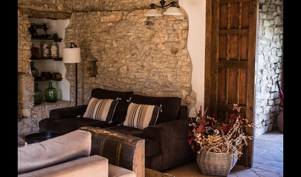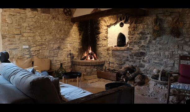 En la planta baja también encontrará una sala de estar, con una chimenea tradicional. Siéntese en el cómodo sofá, cerca del fuego, y relájese con los suaves chasquidos y estallidos del fuego, mientras la tarde da paso a la noche. Las acogedoras y clásicas paredes de piedra no hacen más que aumentar la sensación de vivir en un trozo de serenidad catalana hecho a medida, y es un lugar ideal para relajarse< /strong> solo o con amigos/familia; relájese, cene o disfrute de animadas conversaciones hasta altas horas de la noche. También encontrarás la cocina en la planta baja.