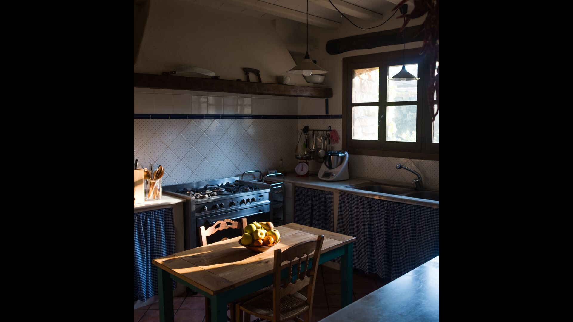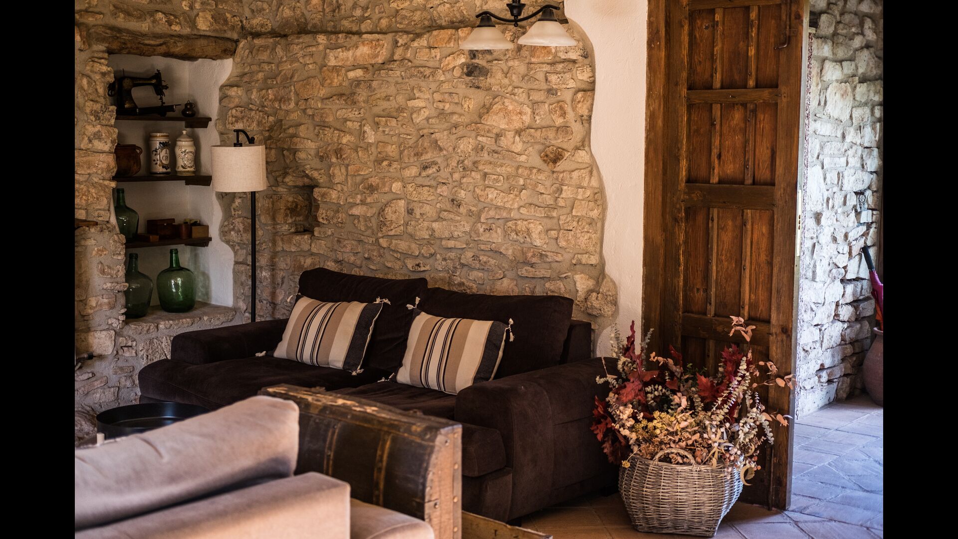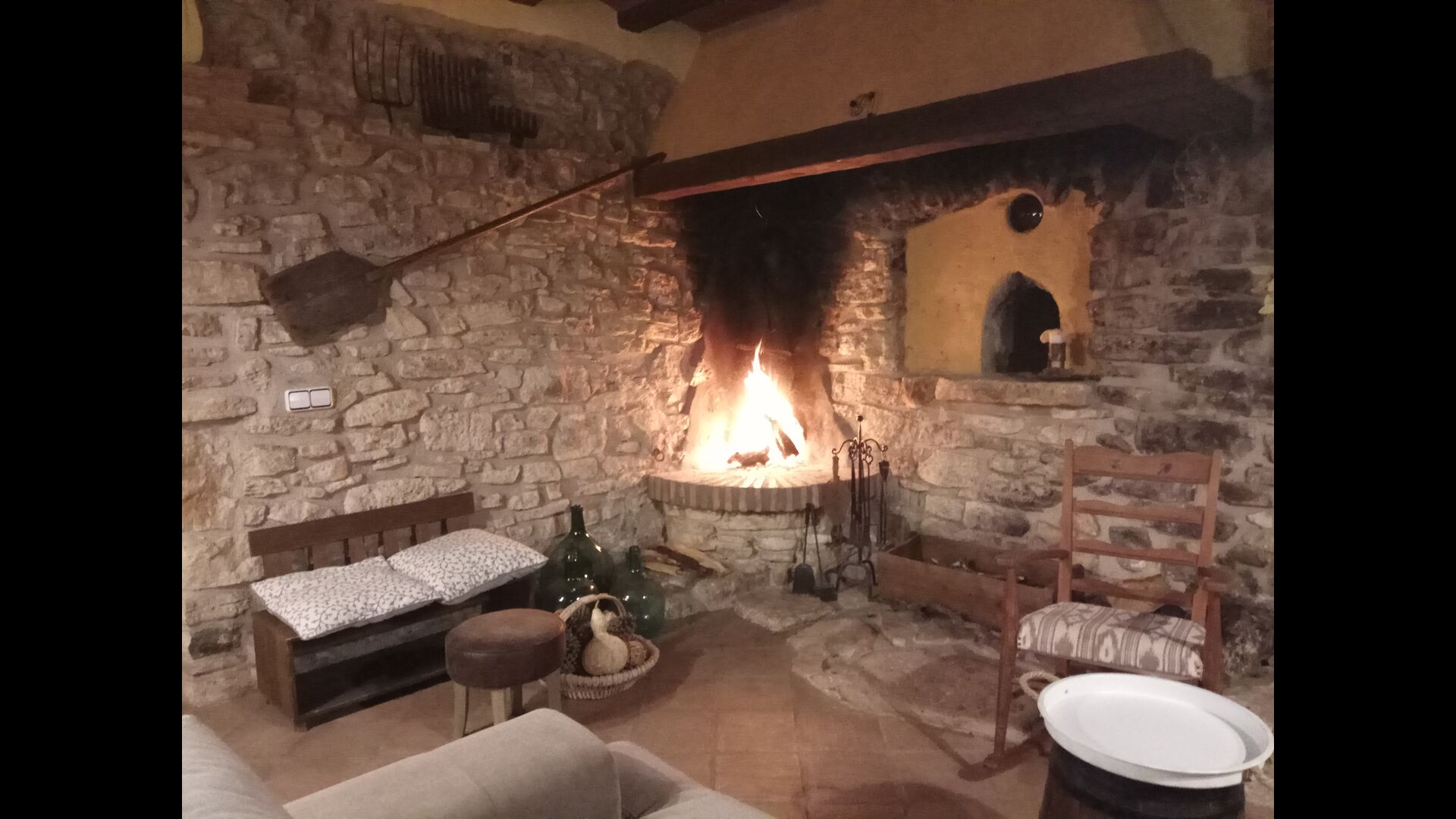 En la planta baja también encontrará una sala de estar, con una chimenea tradicional. Siéntese en el cómodo sofá, cerca del fuego, y relájese con los suaves chasquidos y estallidos del fuego, mientras la tarde da paso a la noche. Las acogedoras y clásicas paredes de piedra no hacen más que aumentar la sensación de vivir en un trozo de serenidad catalana hecho a medida, y es un lugar ideal para relajarse< /strong> solo o con amigos/familia; relájese, cene o disfrute de animadas conversaciones hasta altas horas de la noche. También encontrarás la cocina en la planta baja.