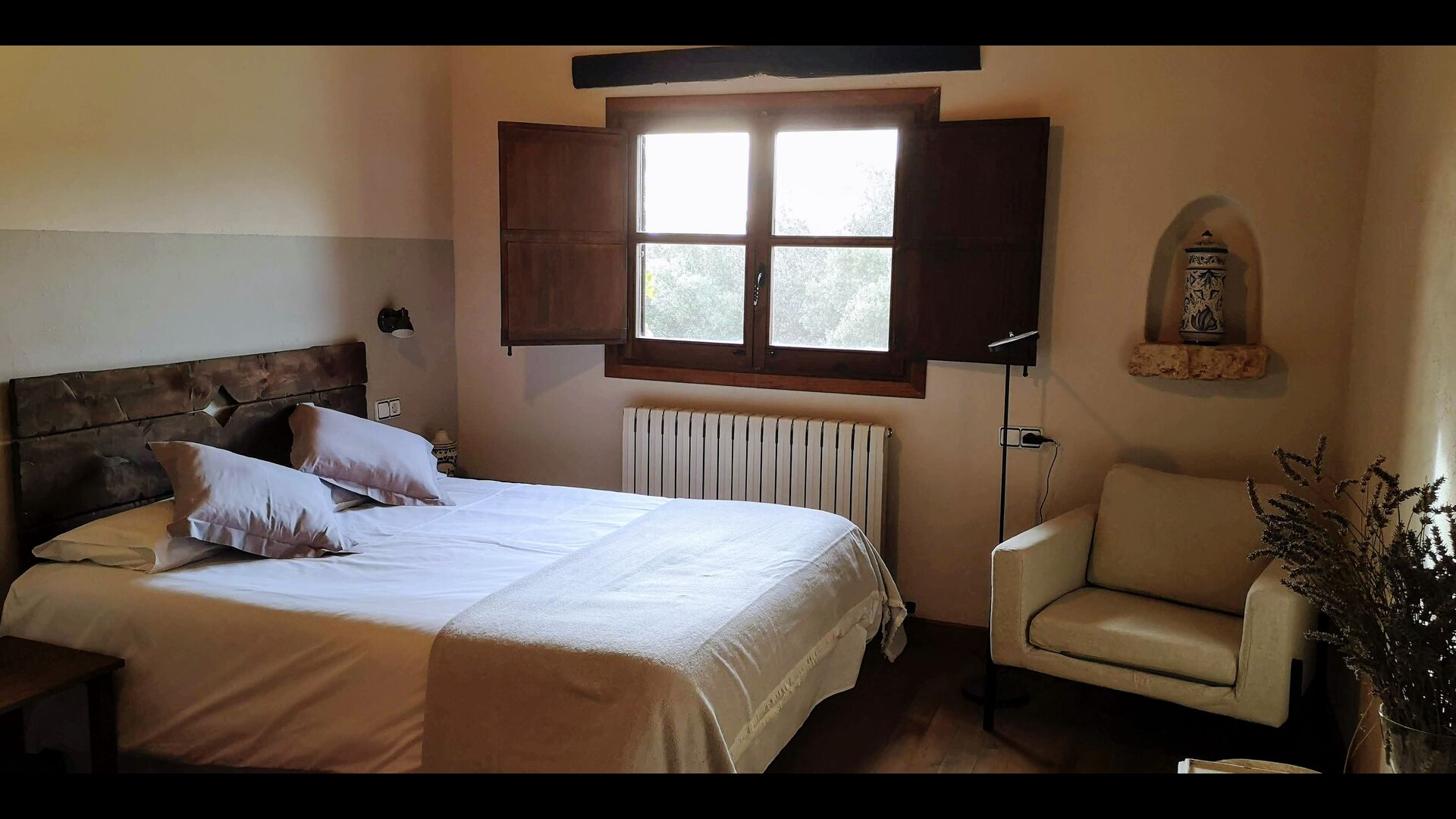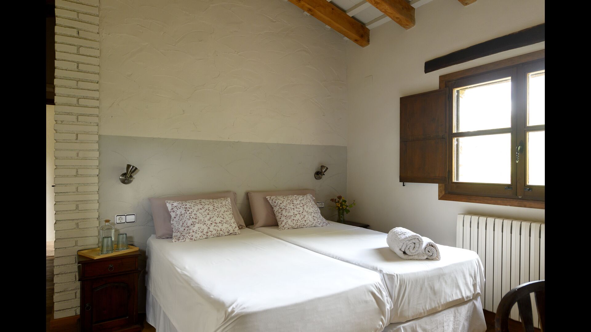 - Pintell: Habitación con 2 camas individuales y baño privado, equipada con zona de lectura y vistas al jardín. Las dimensiones de una cama individual son 90x190cm.