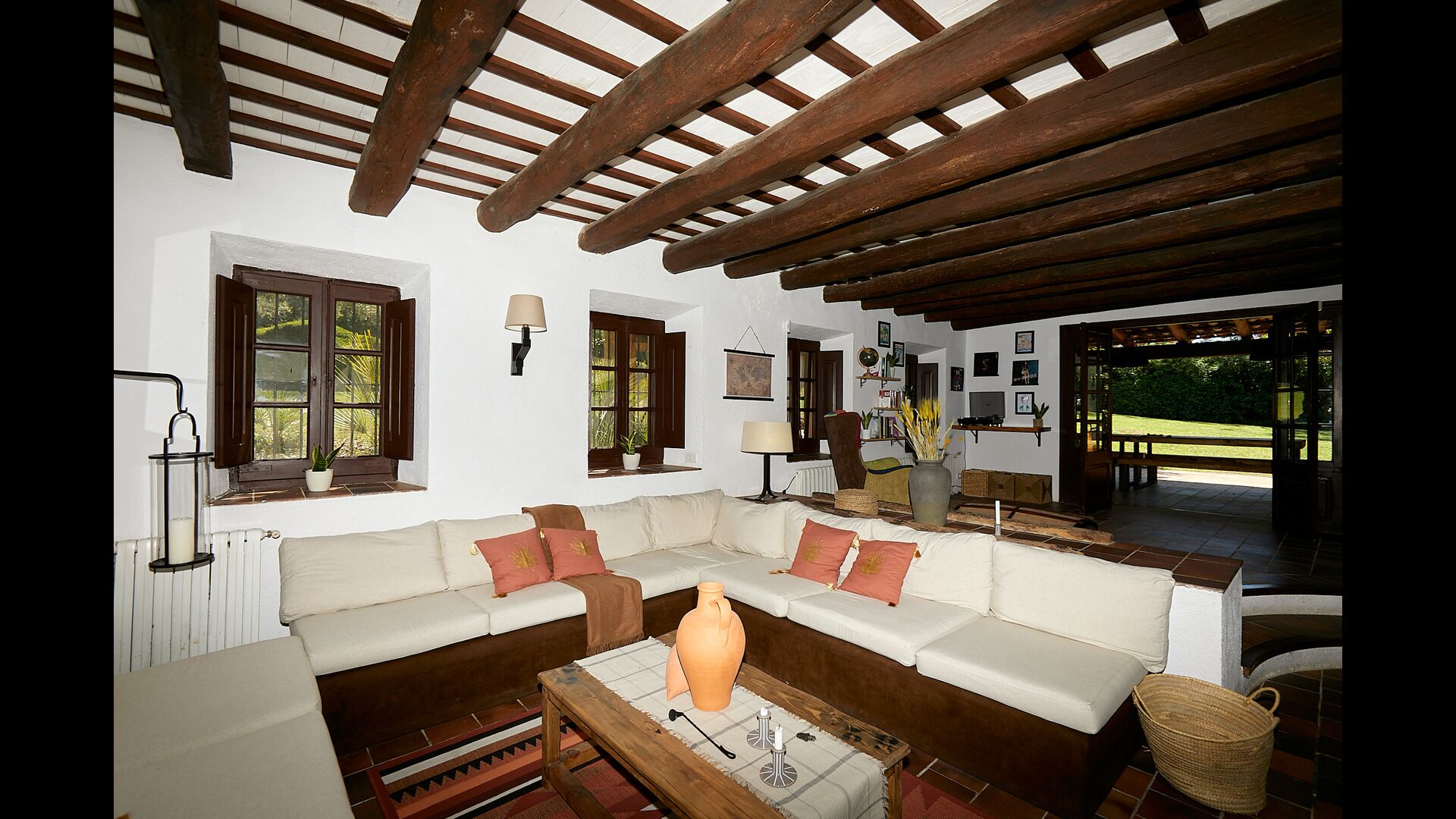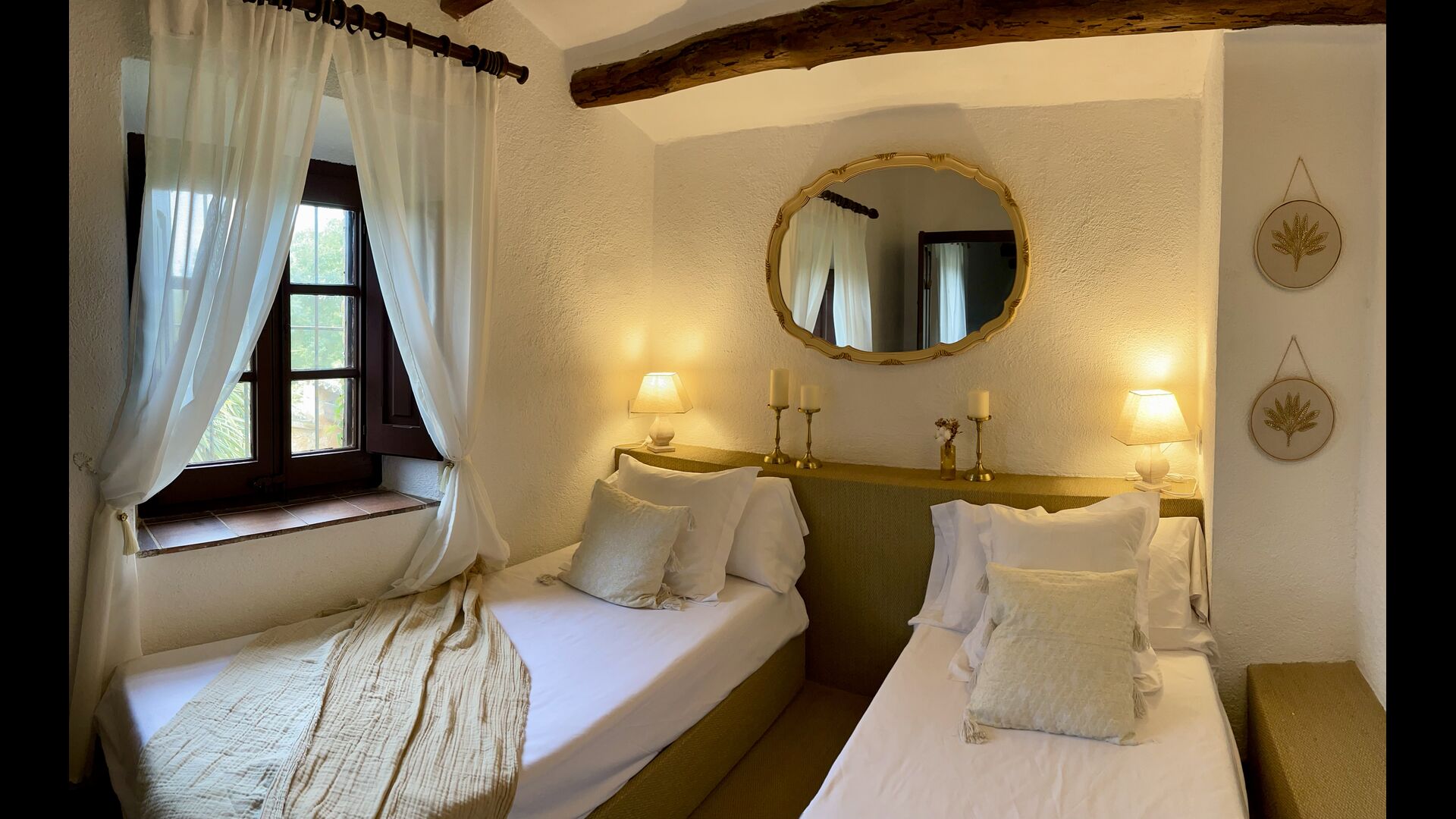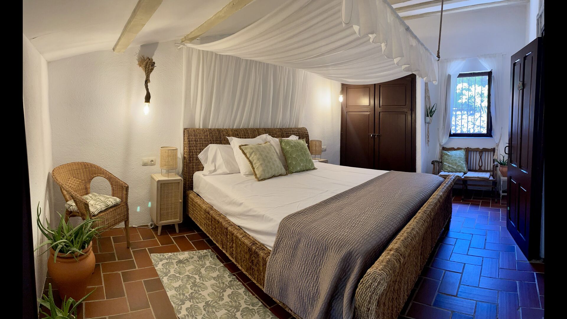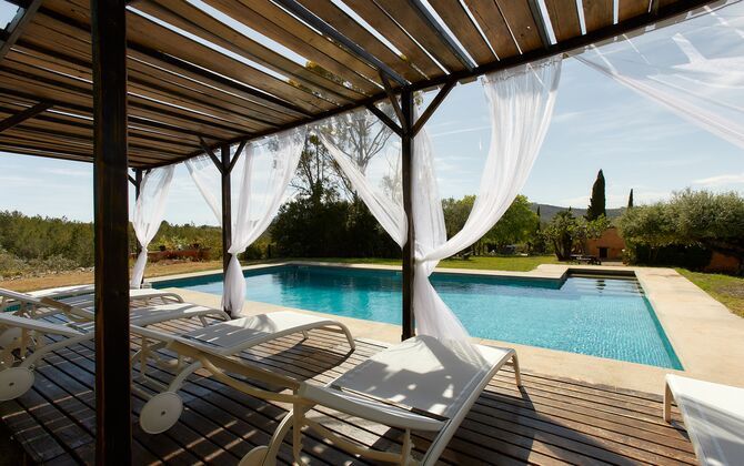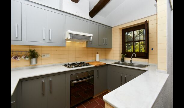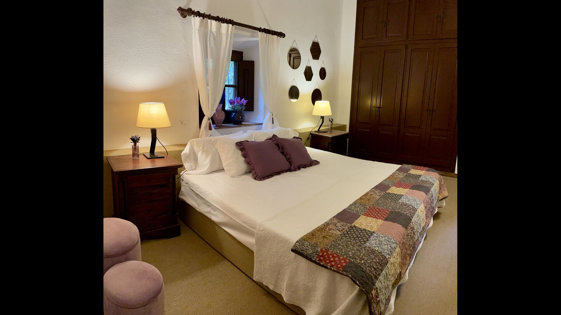 Ejerne af Can Mina har lagt et fantastisk stykke arbejde i dekorationen af ferieboligen, og de har formået at lave de allerbedste omgivelser til en god ferie. Huset har 9 rummelige soveværelser, som alle virkelig er flot indrettede. I hovedbygningen finder du fem soveværelser, der alle har en suite badeværelser. Hvert værelse er opkaldt efter farven på dekorationen.