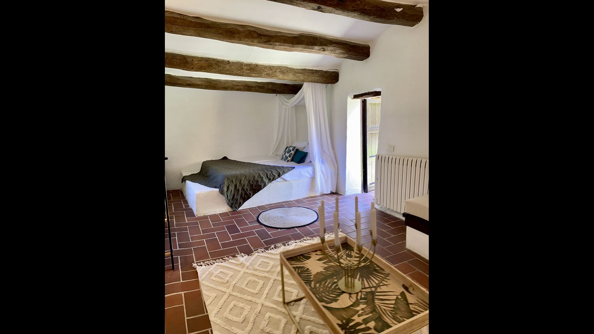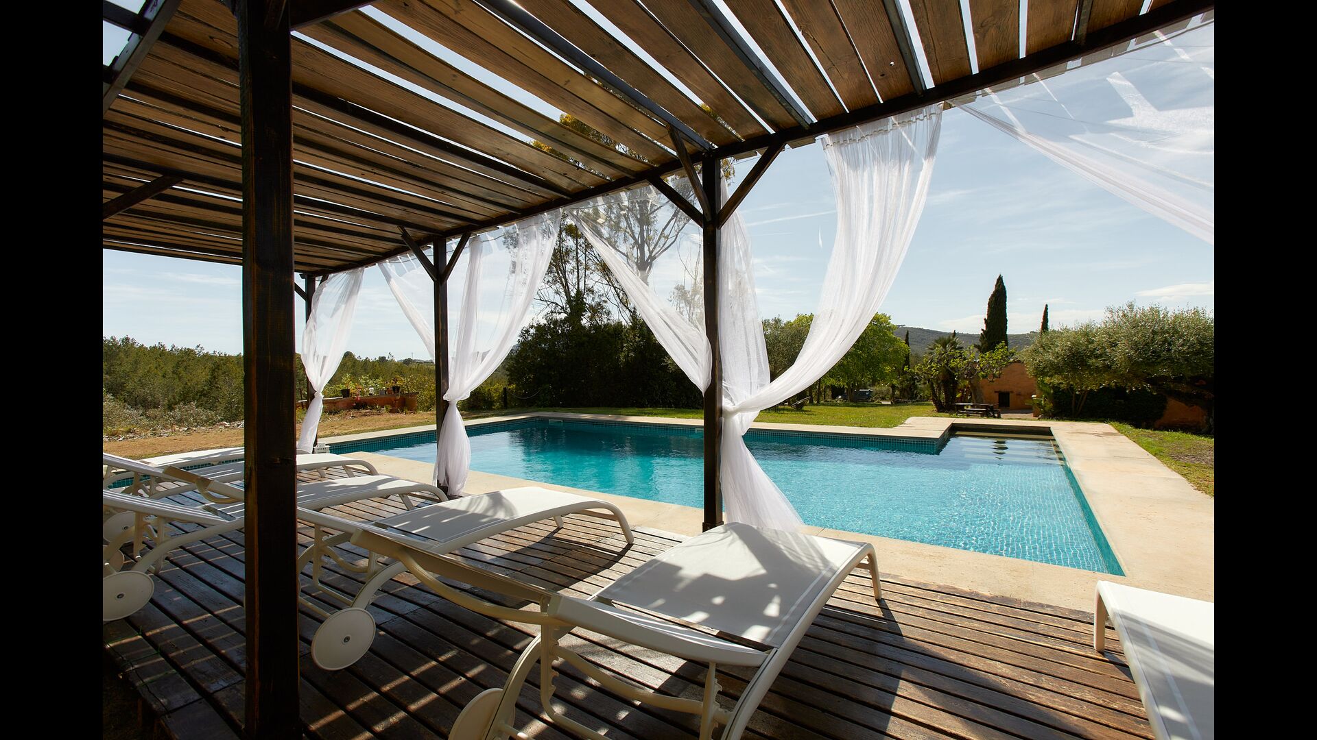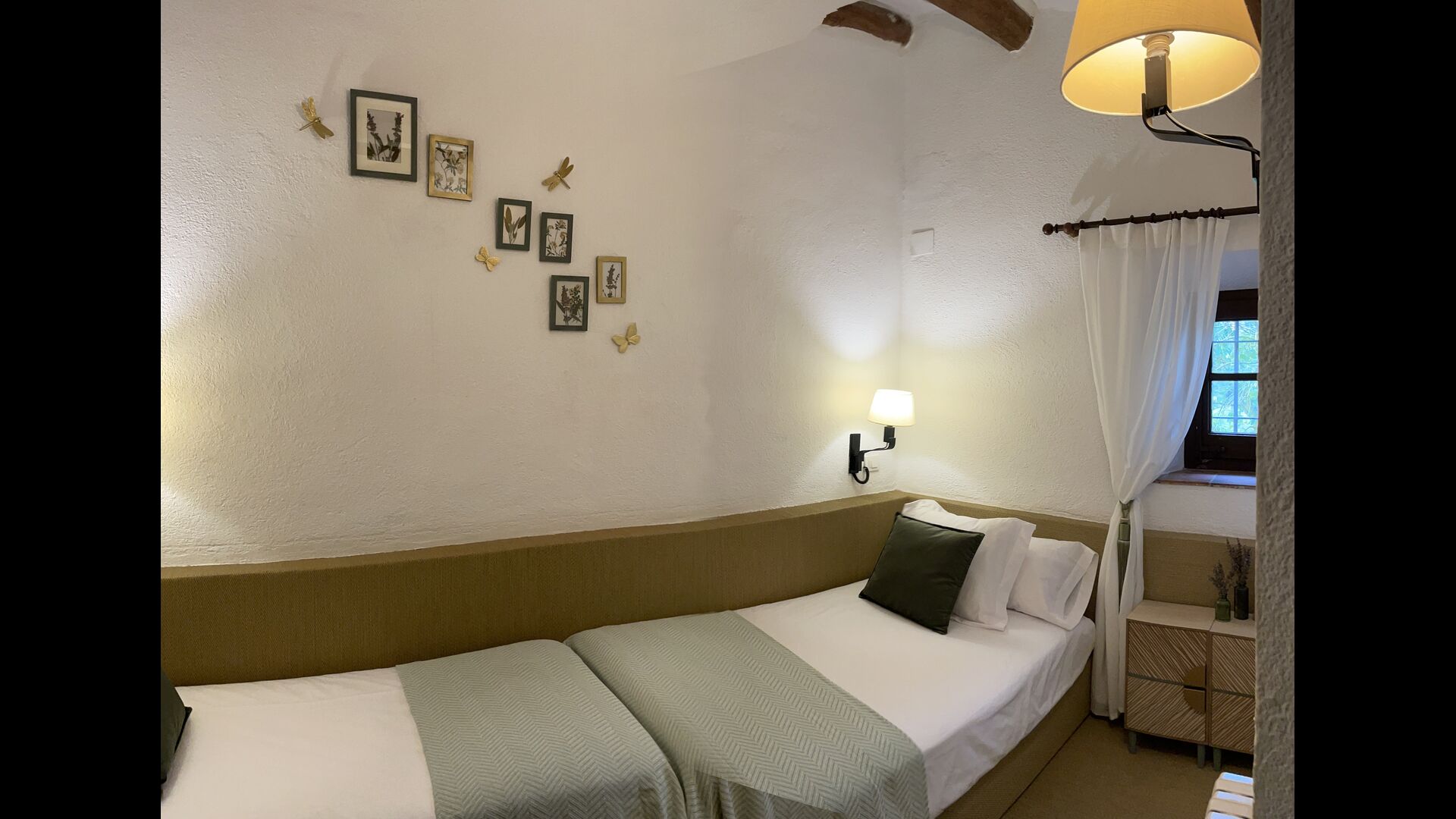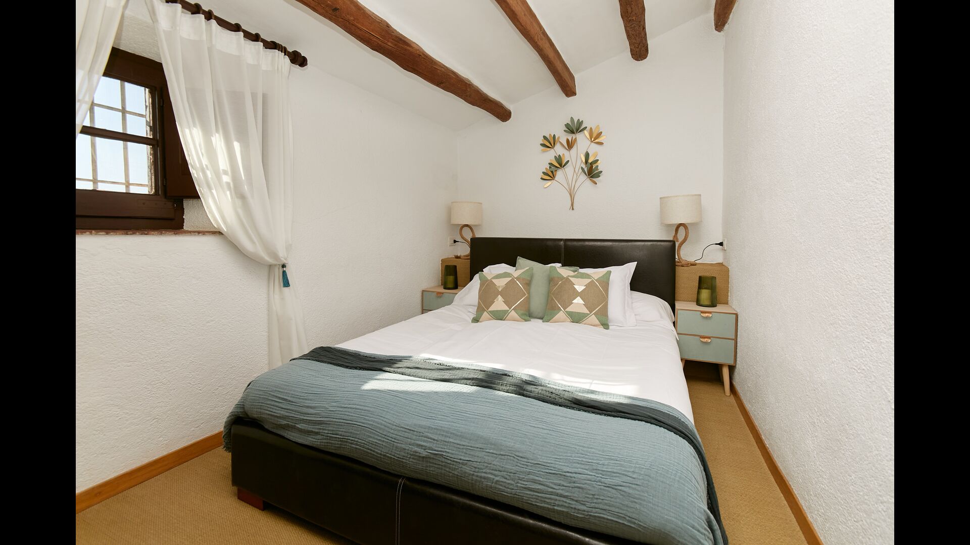 Ejerne af Can Mina har lagt et fantastisk stykke arbejde i dekorationen af ferieboligen, og de har formået at lave de allerbedste omgivelser til en god ferie. Huset har 9 rummelige soveværelser, som alle virkelig er flot indrettede. I hovedbygningen finder du fem soveværelser, der alle har en suite badeværelser. Hvert værelse er opkaldt efter farven på dekorationen.
