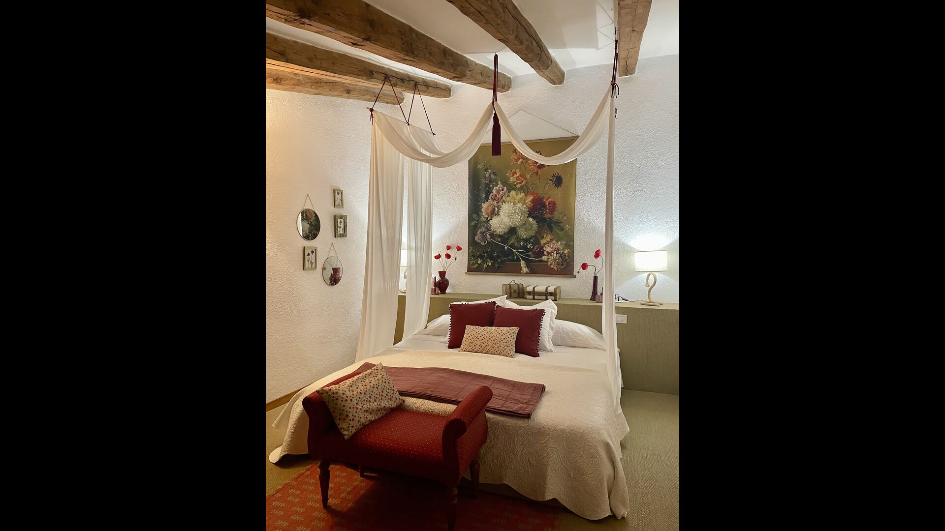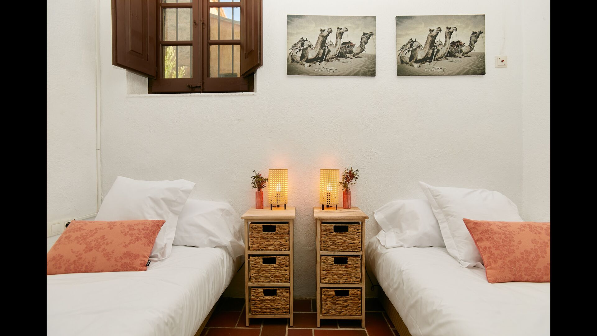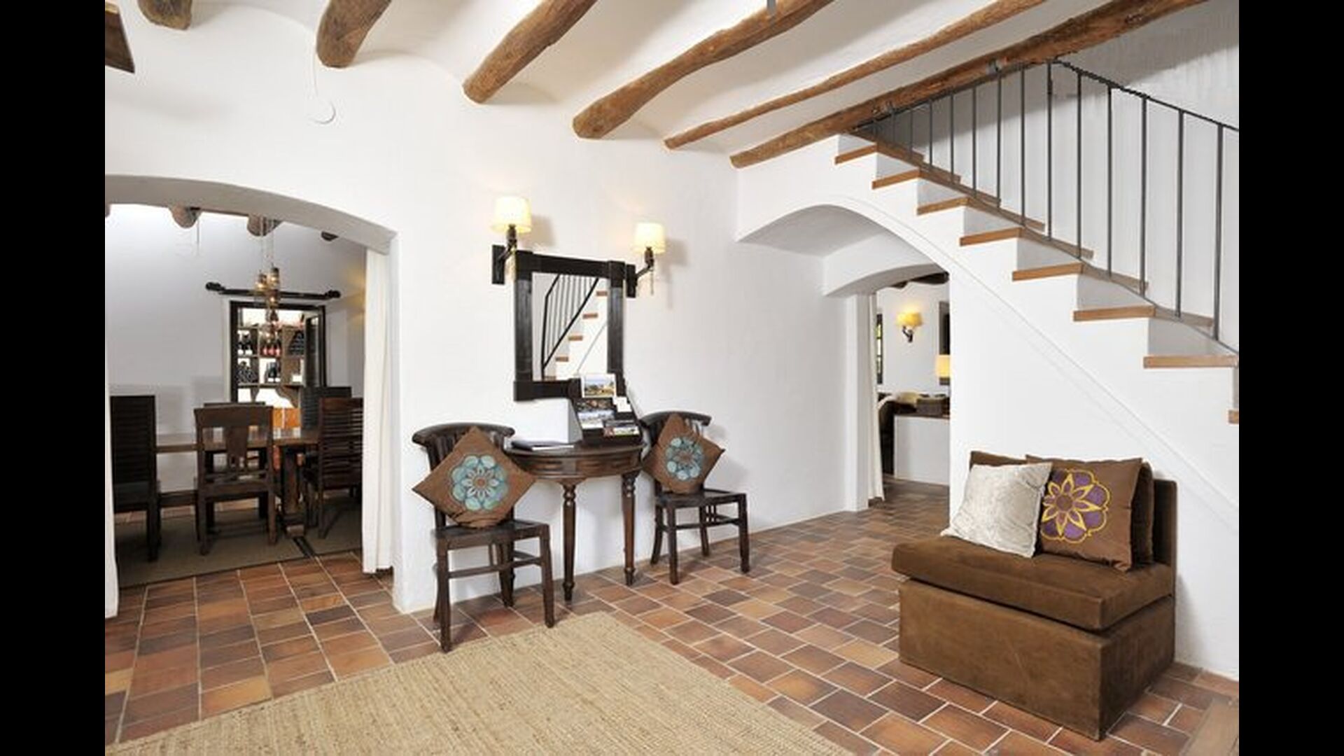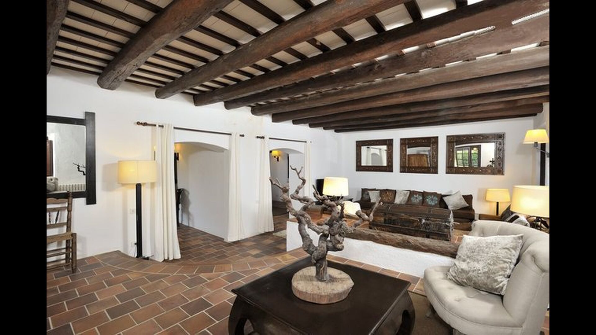 Ejerne af Can Mina har lagt et fantastisk stykke arbejde i dekorationen af ferieboligen, og de har formået at lave de allerbedste omgivelser til en god ferie. Huset har 9 rummelige soveværelser, som alle virkelig er flot indrettede. I hovedbygningen finder du fem soveværelser, der alle har en suite badeværelser. Hvert værelse er opkaldt efter farven på dekorationen.