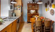 La gran mesa del jardín es el lugar perfecto para sus comidas, sobre todo porque el patio está conectado directamente con la cocina. Disfrutar del cava local en el cálido verano catalán es la forma perfecta de recargar las pilas.